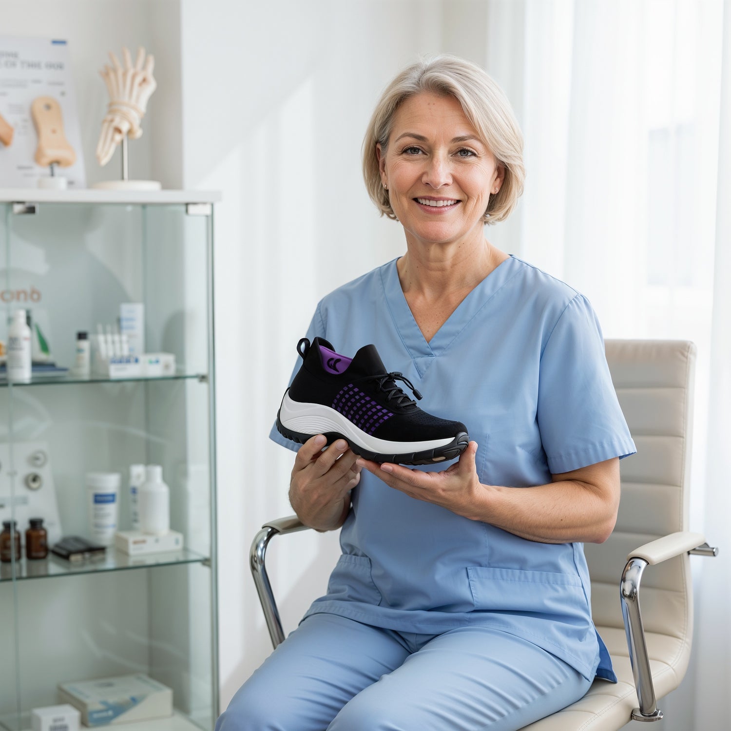 ”Efter 12 timmar på avdelningen kunde jag knappt gå – brännande hälar, svullna vrister. Med Orthora är det slut med det. Jag klarade hela skiftet utan smärta. Äntligen skor som verkligen håller vad de lovar.”